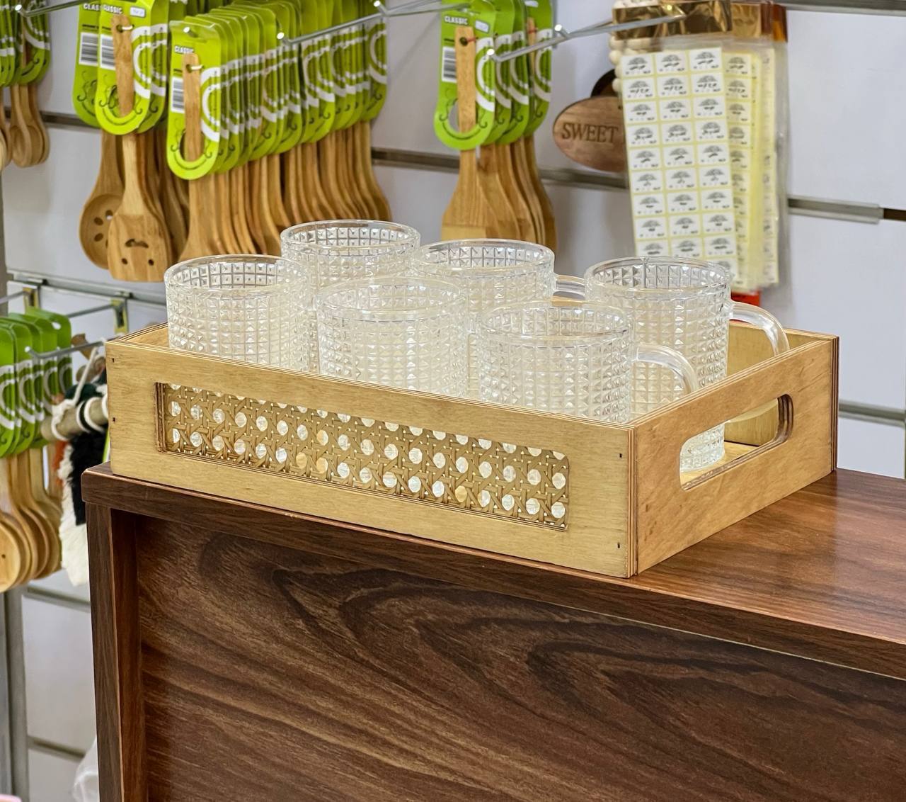 سینی چوبی مستطیل مدل حصیری
