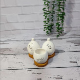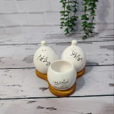 ست سرامیکی ادویهدان با طراحی خوشنویسی فارسی یک ست خاص و چشمنواز برای آشپزخانههای ایرانی! این ست سهتایی ادویهدان با طراحی سرامیکی و نوشتههای زیبای فارسی، هم کاربردی است و هم جنبه تزئینی دارد. قرار گرفتن هر سه ظرف روی پایه چوبی شیک، آن را به انتخابی ایدهآل برای میز غذا یا دکور آشپزخانه تبدیل کرده است. مشخصات کالا رنگ: سفید با نوشته مشکی جنس: سرامیک با پایه چوبی روس قابل شستشو تعداد قطعات: سه عدد (دو نمک/فلفلپاش + یک ظرف خلال دندان) ویژگی خاص: خوشنویسی فارسی روی بدنه