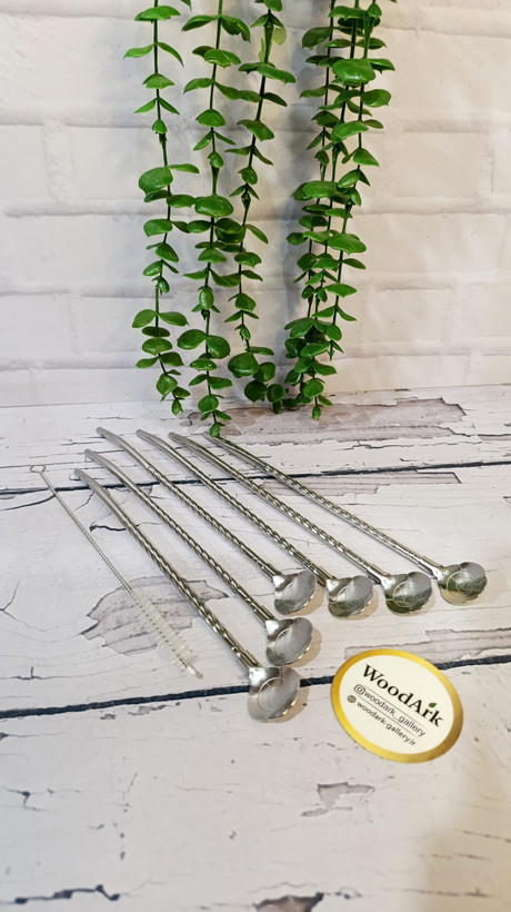 نی شربت خوری نقره ای شش عددی