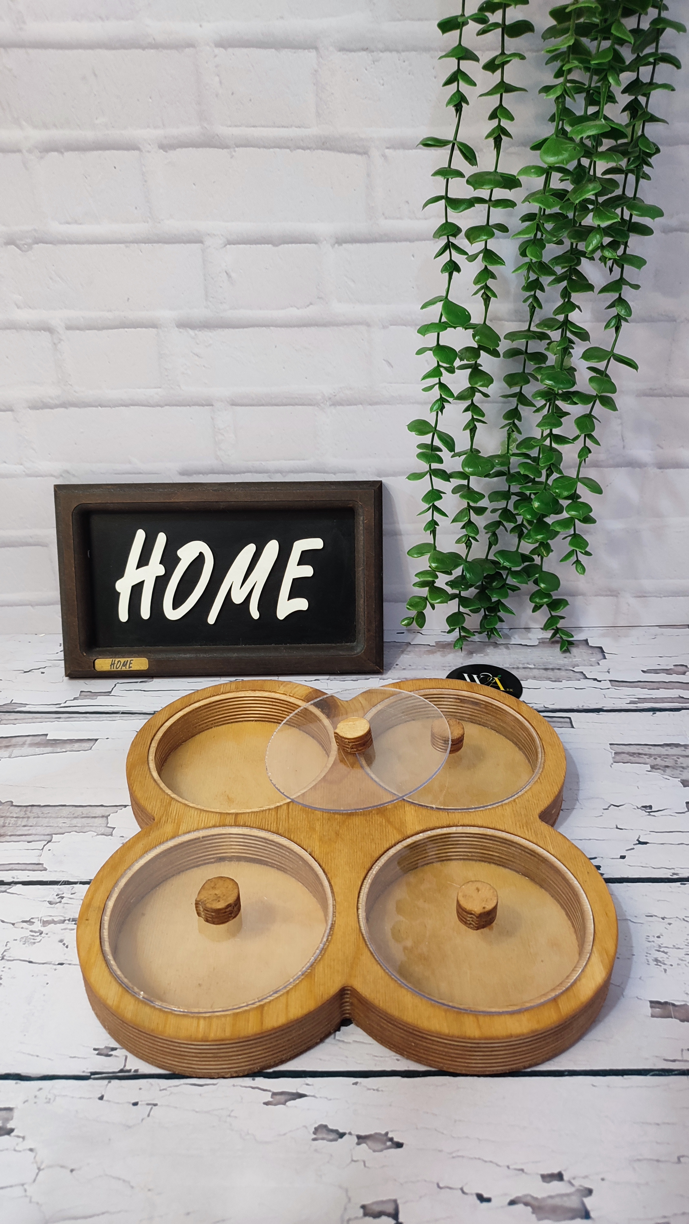 دیگه تنقلاتِ مهمونیها و دورهمیهاتون تو ظرفهای پلاستیکیِ زشت گم نمیشن! این **باکس چوبی شیک** با ۴ خانه دربدار، هم خوراکیهاتون رو تازه نگه میداره، هم به میز پذیراییتون کلاس خاصی میده!