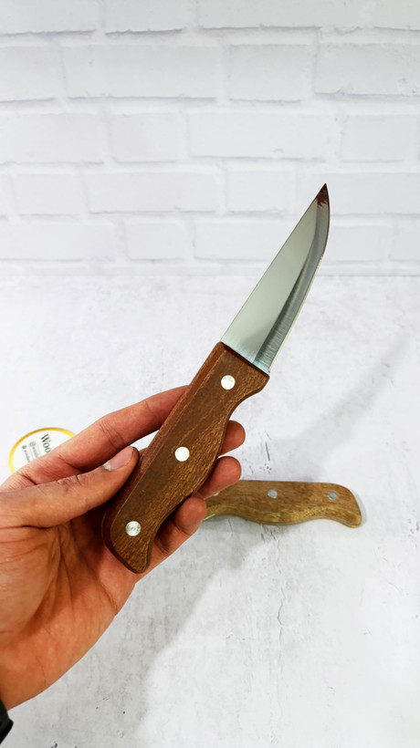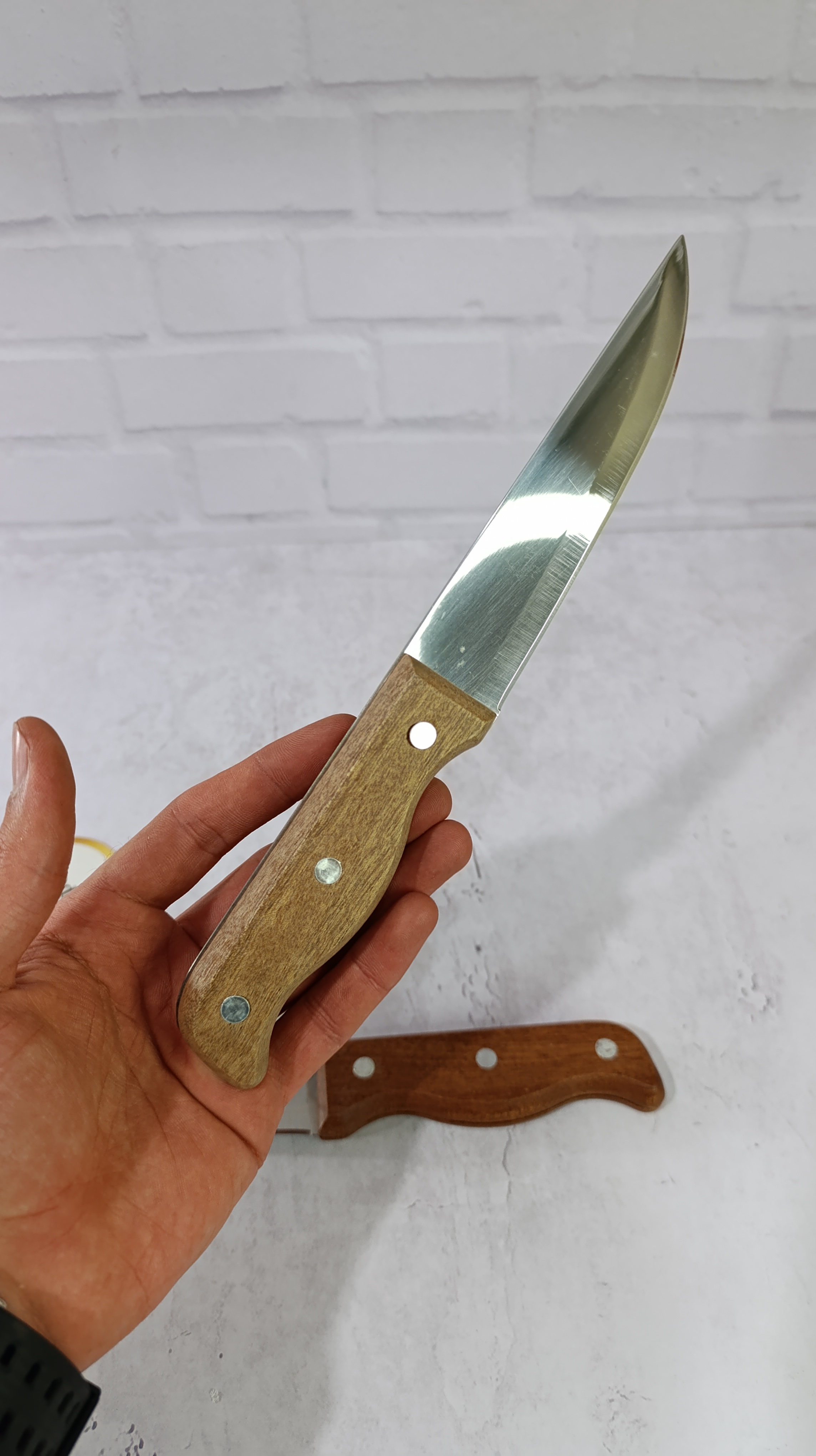 چاقوی دسته چوبی با تیغه استیل ضد زنگ، انتخابی کاربردی و خوشدست برای آشپزخانههای حرفهای و خانگی.