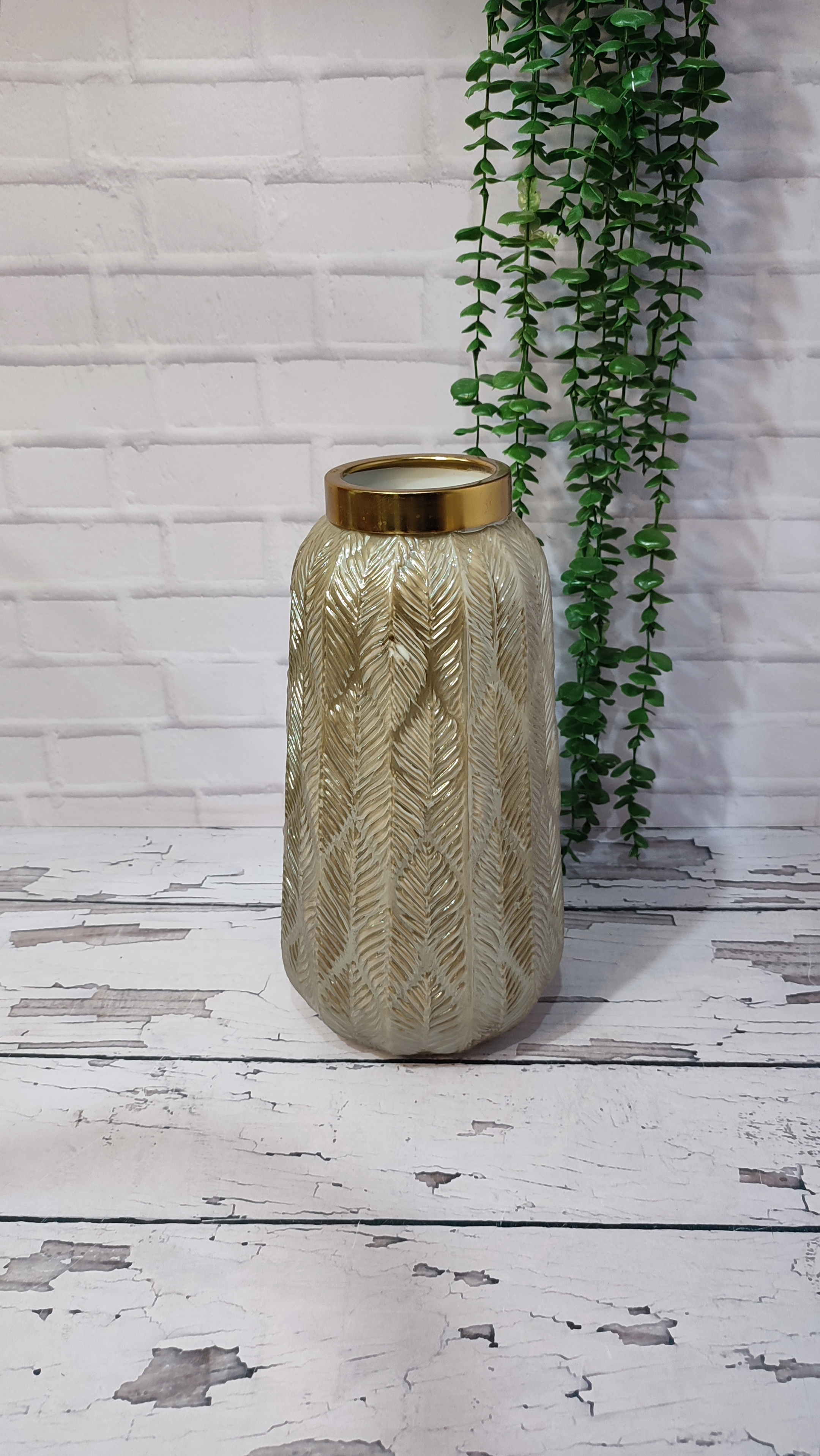 با این گلدان **شیشهای برگی شکل**، فضای خانهتان را با طراوتی منحصربهفرد تزیین کنید.
