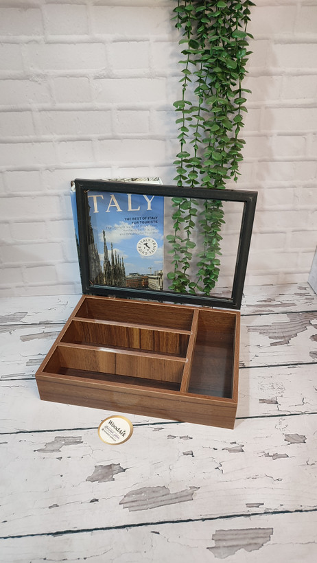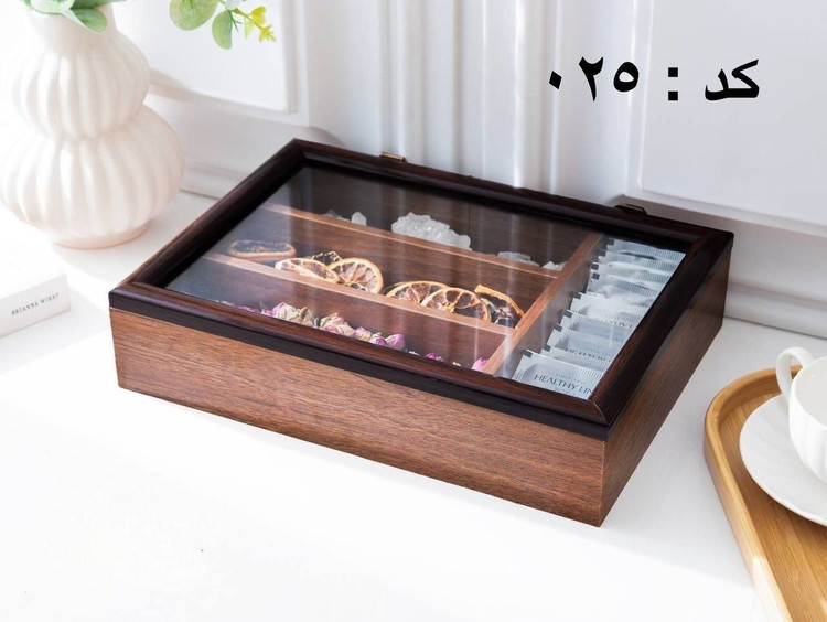 اگر اهل دمنوش و چایهای متنوع هستید، این جعبه چوبی چهارخانه انتخابی ایدهآل برای شماست. با طراحی ساده و دربدار، هم از تیبگها در برابر گرد و غبار محافظت میکند و هم به فضای آشپزخانه یا پذیرایی نظم و زیبایی میدهد.