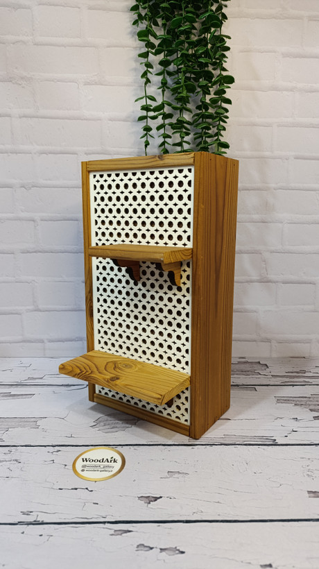 این مدل تمامچوب، با طرح حصیری دستساز و دو طبقهی طاقچهای، هم جلوهای دکوراتیو به آشپزخانه میبخشد و هم فضای کاربردی برای قرار دادن گلدان، شمع یا وسایل تزئینی ایجاد میکند.