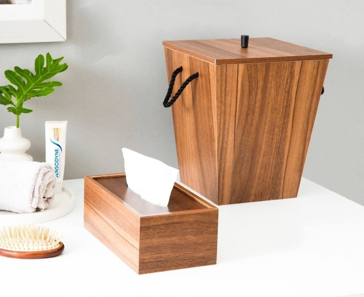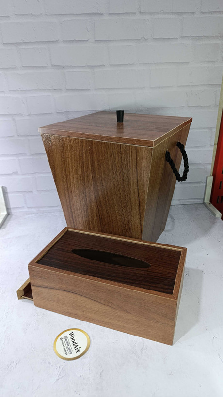 ست سطل زباله و جا دستمال کاغذی تمام چوب MDF – گرما و نظم چوبی در سرویس و آشپزخانه 🪵✨