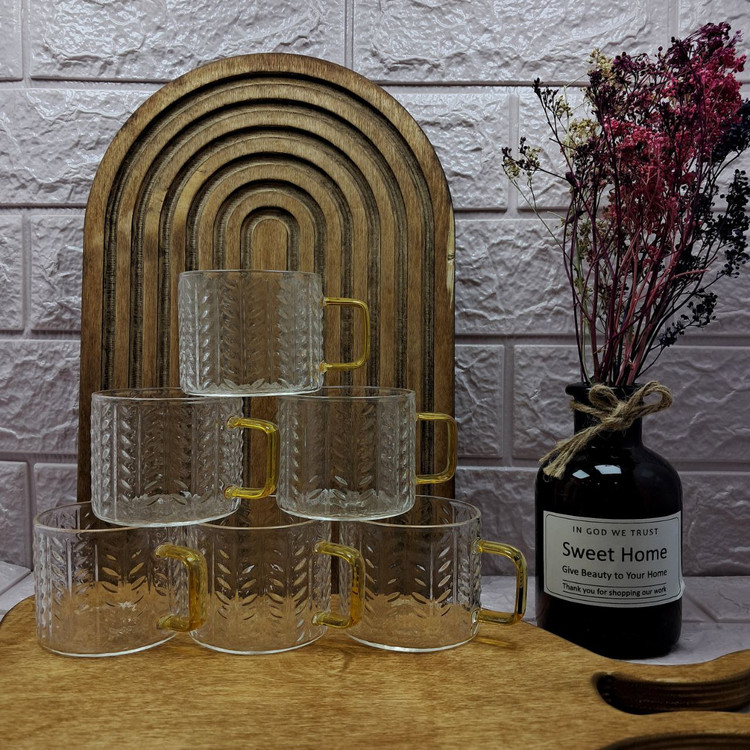 این شاتهای پیرکس شفاف با طرح برجسته گندم یا برگ و درخشش دسته طلایی، دقیقاً اون چیزی هستن که برای ارتقاء سطح پذیراییات نیاز داری. طراحی این شاتها، حس لوکس بودن و ظرافت رو به هر میز یا سینی میآرن.